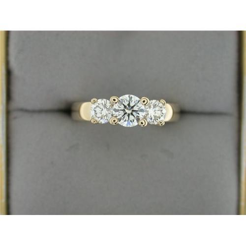 Custom Made 14k Yellow Gold '3 Stone' Diamond Wedding Band featuring a center Brilliant Cut Round Diamond = .51 CARATS! This Diamond is a FINE 'H' Color and FINE 'VS2' Clarity and it has a Certificate from the EGL. (Original is enclosed). There is a matching round Diamond each side and the Diamond Total Weight = 1.04 CARATS!