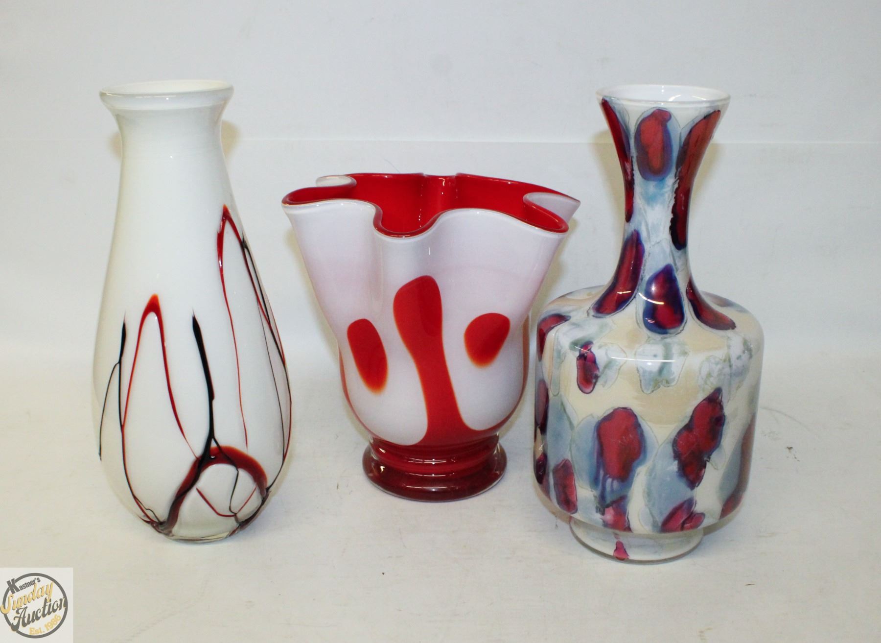 3 DIFFERENT ART GLASS/POTTERY VASES
