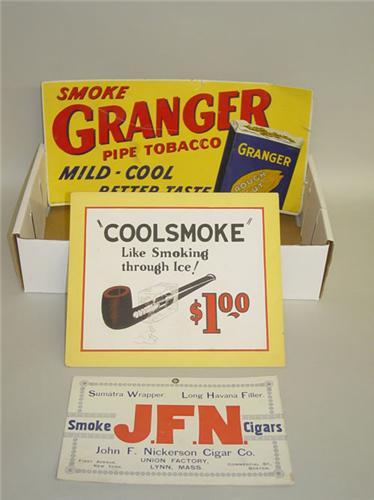 (3) DIFFERENT COLOR LITHOGRAPH ADVERTISING CARDS FOR TOBACCO PRODUCTS INCLUDING GRANGER PIPE TOBACCO, "COOLSMOKE" PIPES & J.F.N. CIGARS