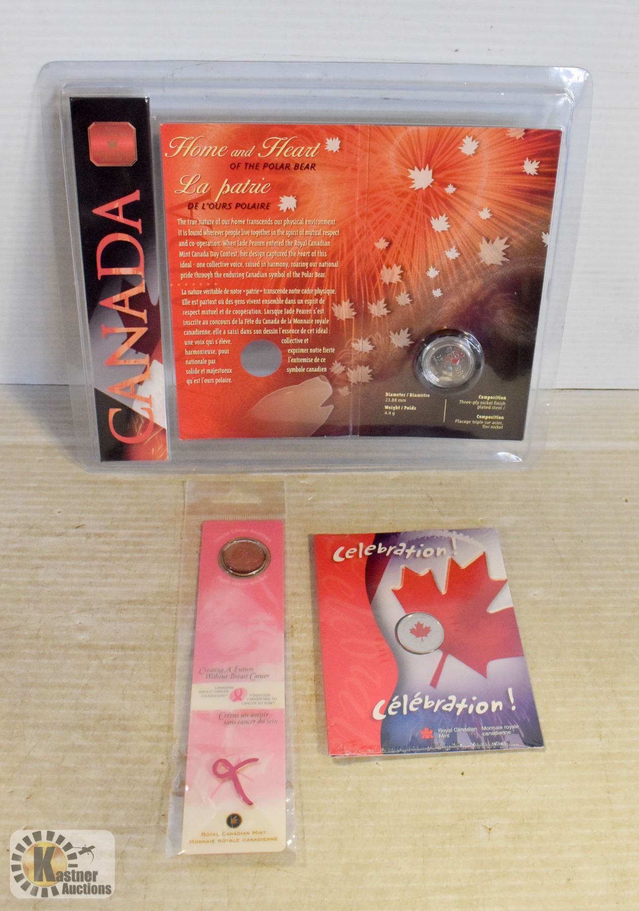 2003 HOME AND HEART COIN IN SEALED CASE, 2004 CELEBRATION, 2006 SPECIAL EDITION BREAST CANCER BOOKMARK
