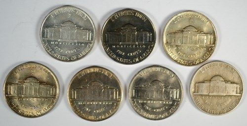 3-DIFFERENT JEFFERSON "WAR" NICKELS (42-P,43-P,45-P) AU/UNC & 4 DIFFERENT
