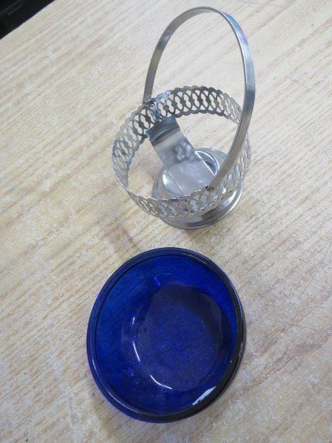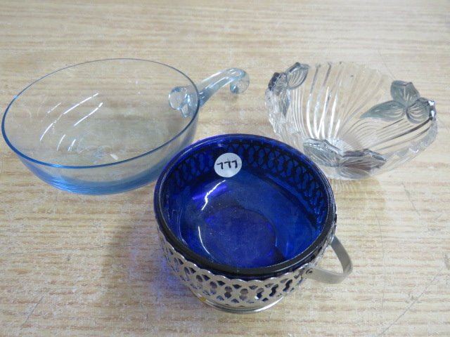 3 DISHES 1 BLUE TINTED, 1 SILVER TINTED, 1W/STAND