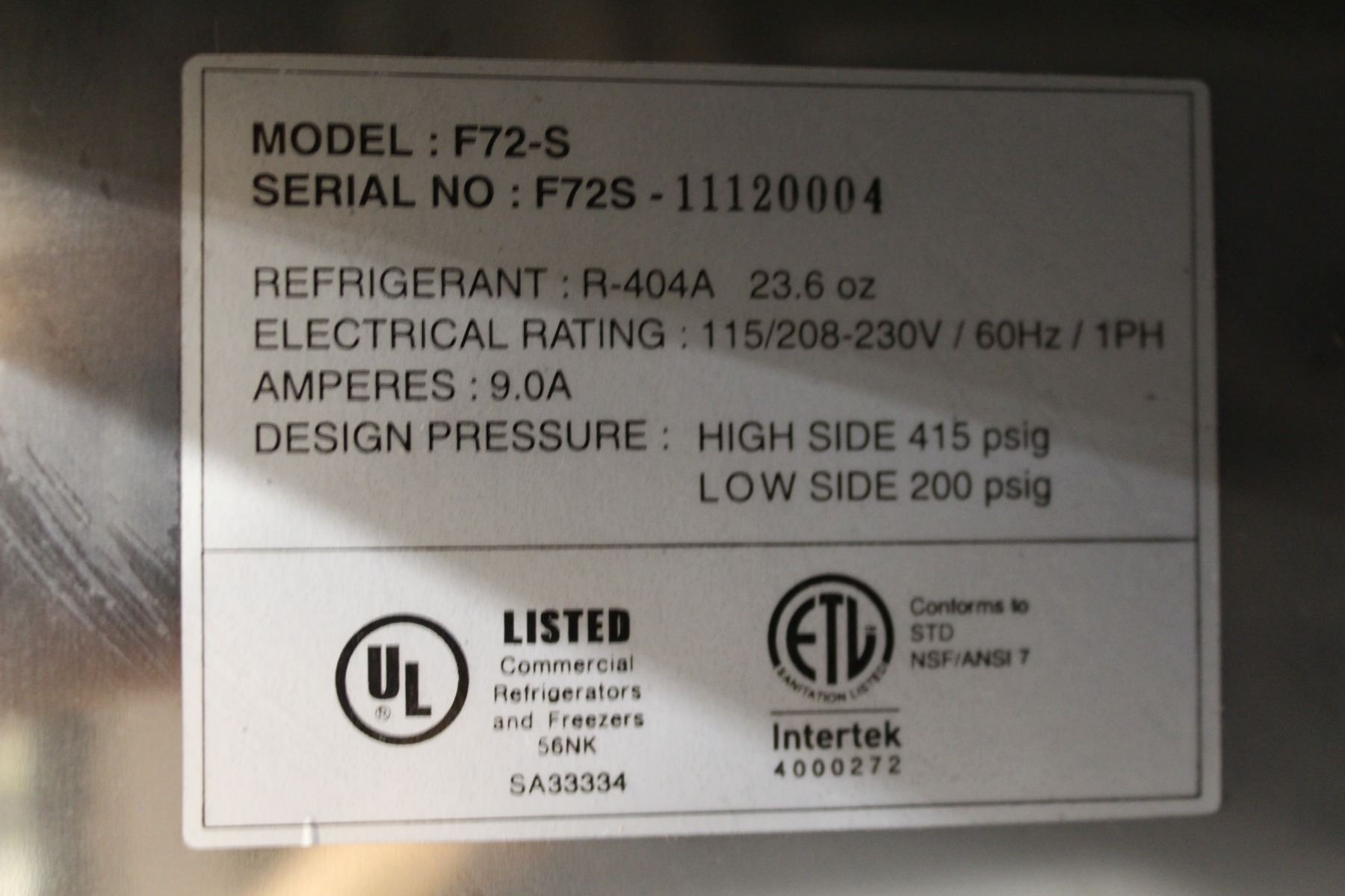 M# F72-S, R404a, SINGLE PHASE, 115/208-230V, 9A. 78" X 31" X 84" **ALL ITEMS MUST BE REMOVED BY 5PM MONDAY, SEPTEMBER 12TH, 2022. ALL REMAINING ITEMS WILL BE SUBJECT TO A $6.00 PER DAY STORAGE CHARGE. ANY ITEMS REMAINING AFTER MONDAY, SEPTEMBER 26TH, 2022 WILL BE CONSIDERED FORFEITED. NO REFUNDS WILL BE ISSUED FOR FORFEITED ITEMS.** TO SCHEDULE A PICK UP APPOINTMENT CLICK HERE