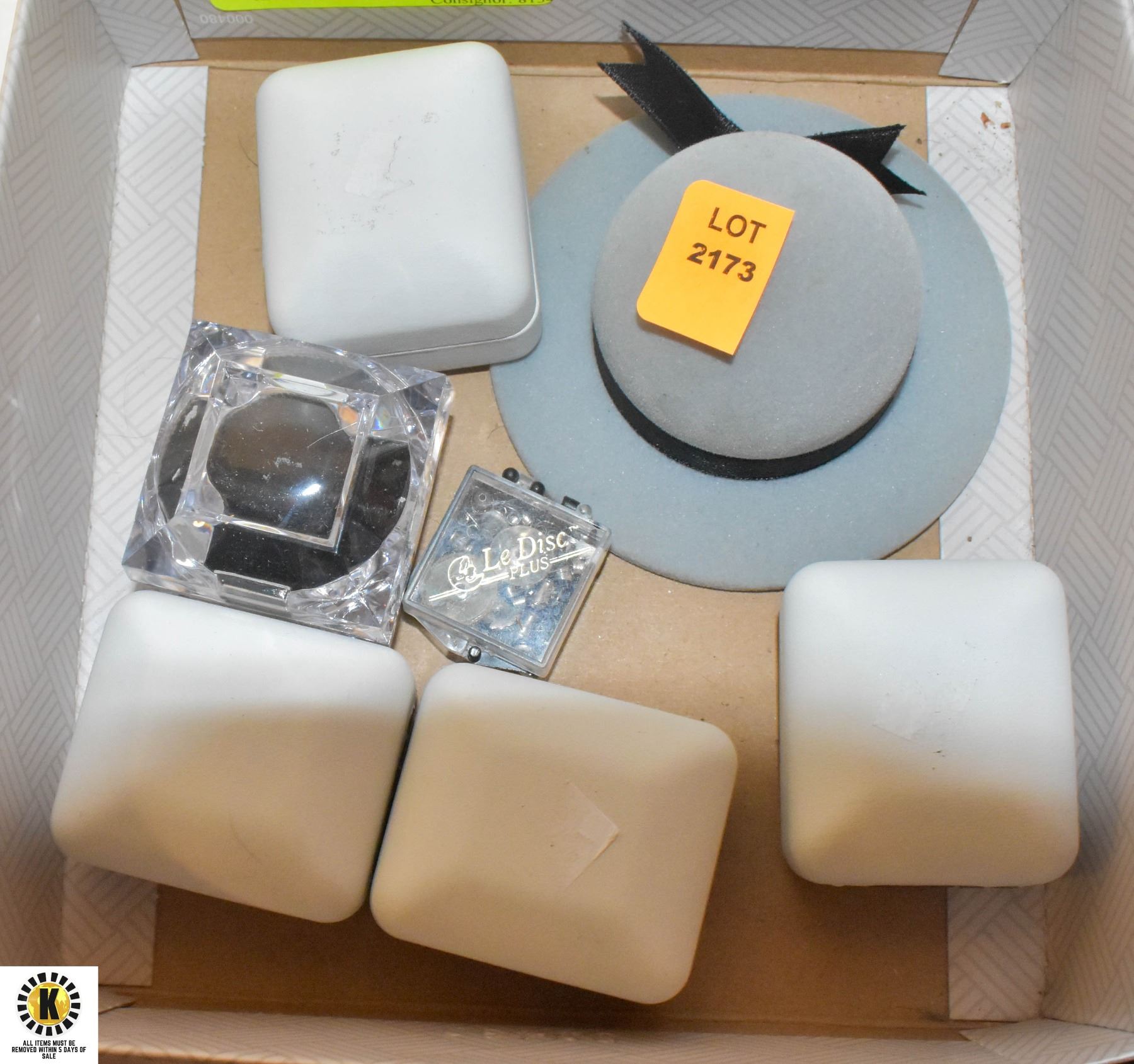 3 DOZEN EARRING BACKS, AND 6 JEWELLRY BOXES