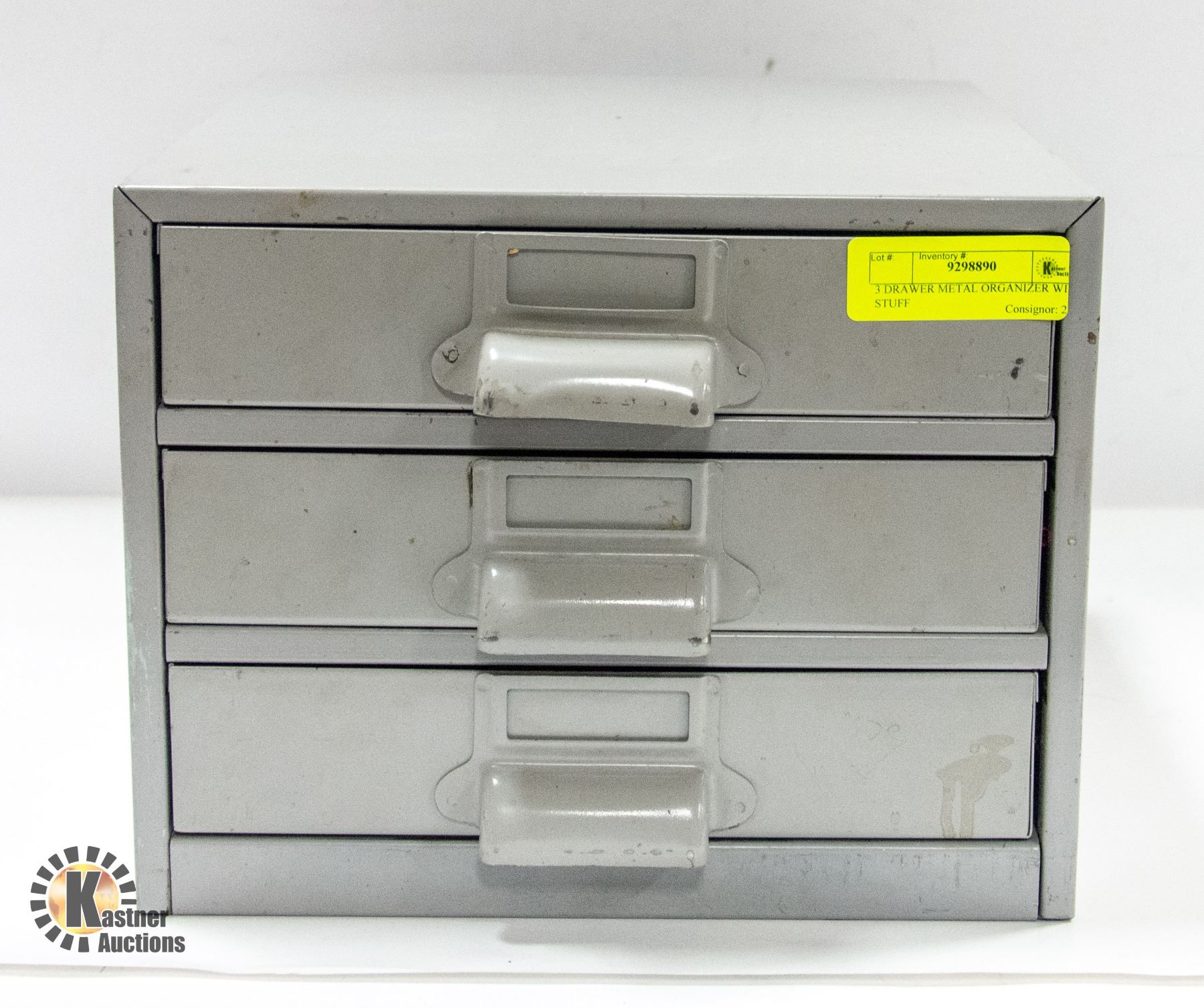 3 DRAWER METAL ORGANIZER WITH CONTENTS