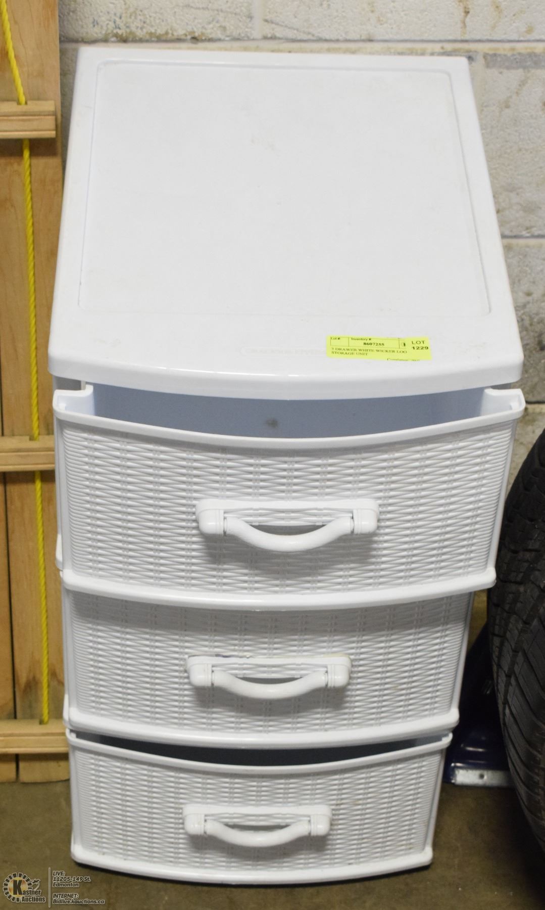 3 DRAWER WHITE WICKER LOOK STORAGE UNIT