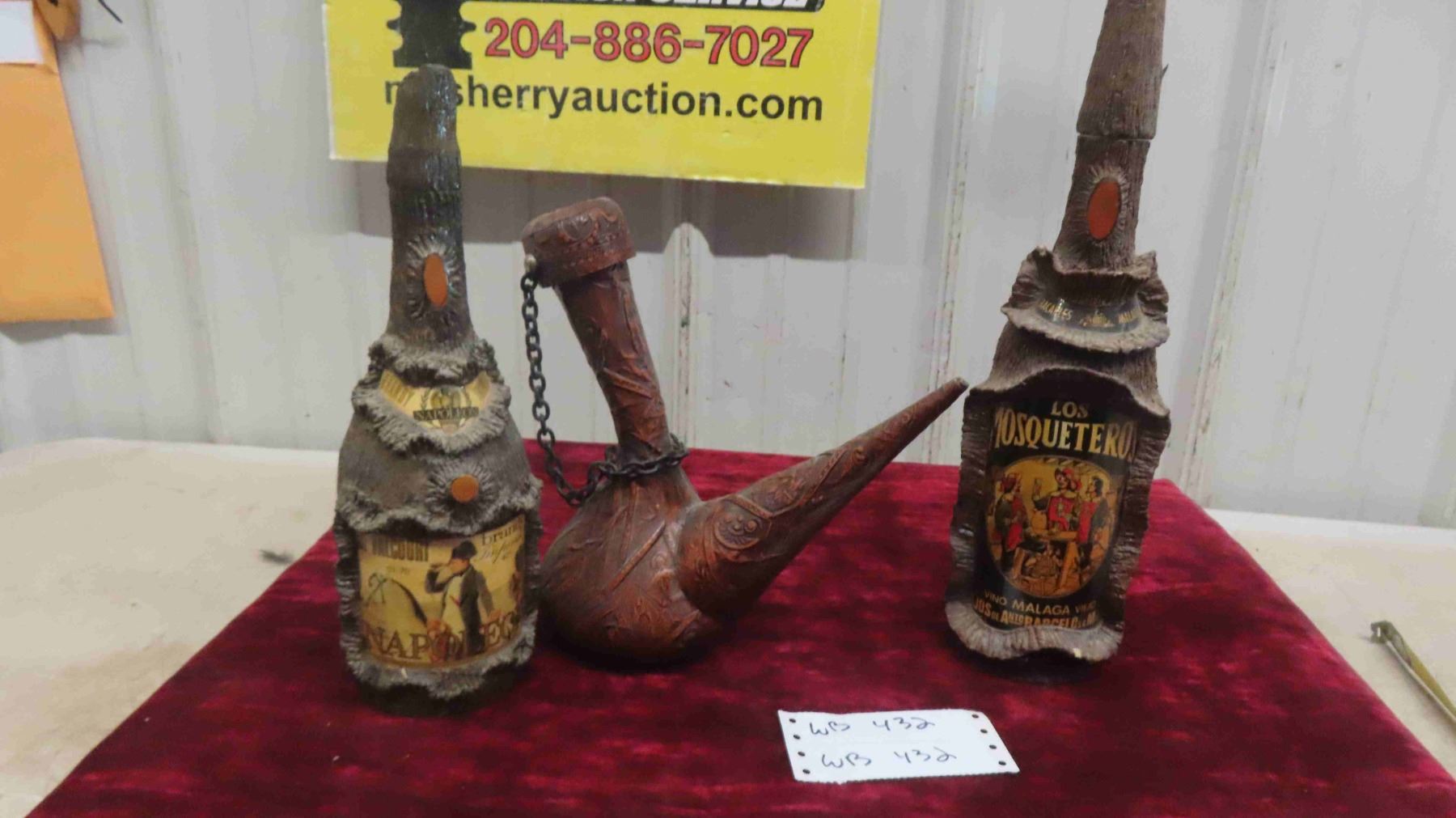 3 Decanters (2) with Cabin Wood (1) Leather , Napolean, Los Mosqueteros