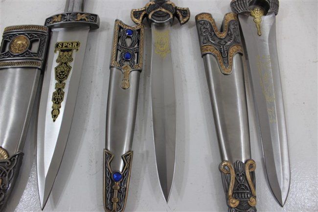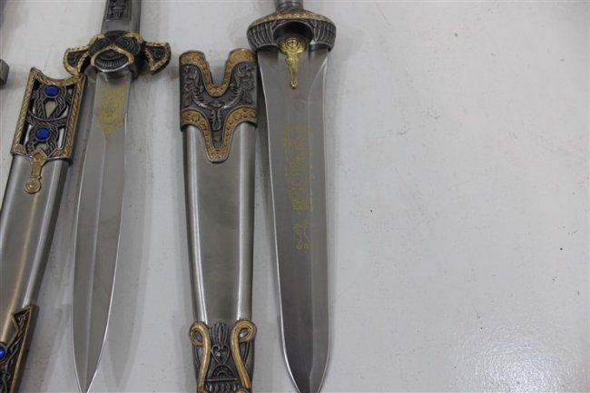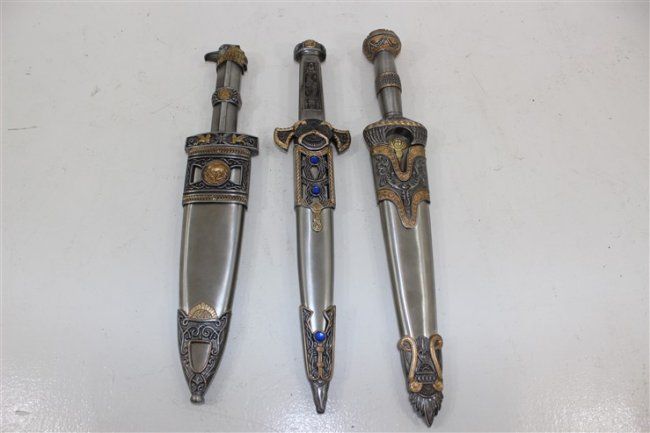 with metal sheathes approx 14 1/2" x 2" medium approx 13" x 2", smallest approx 13 1/2" x 1 1/2"