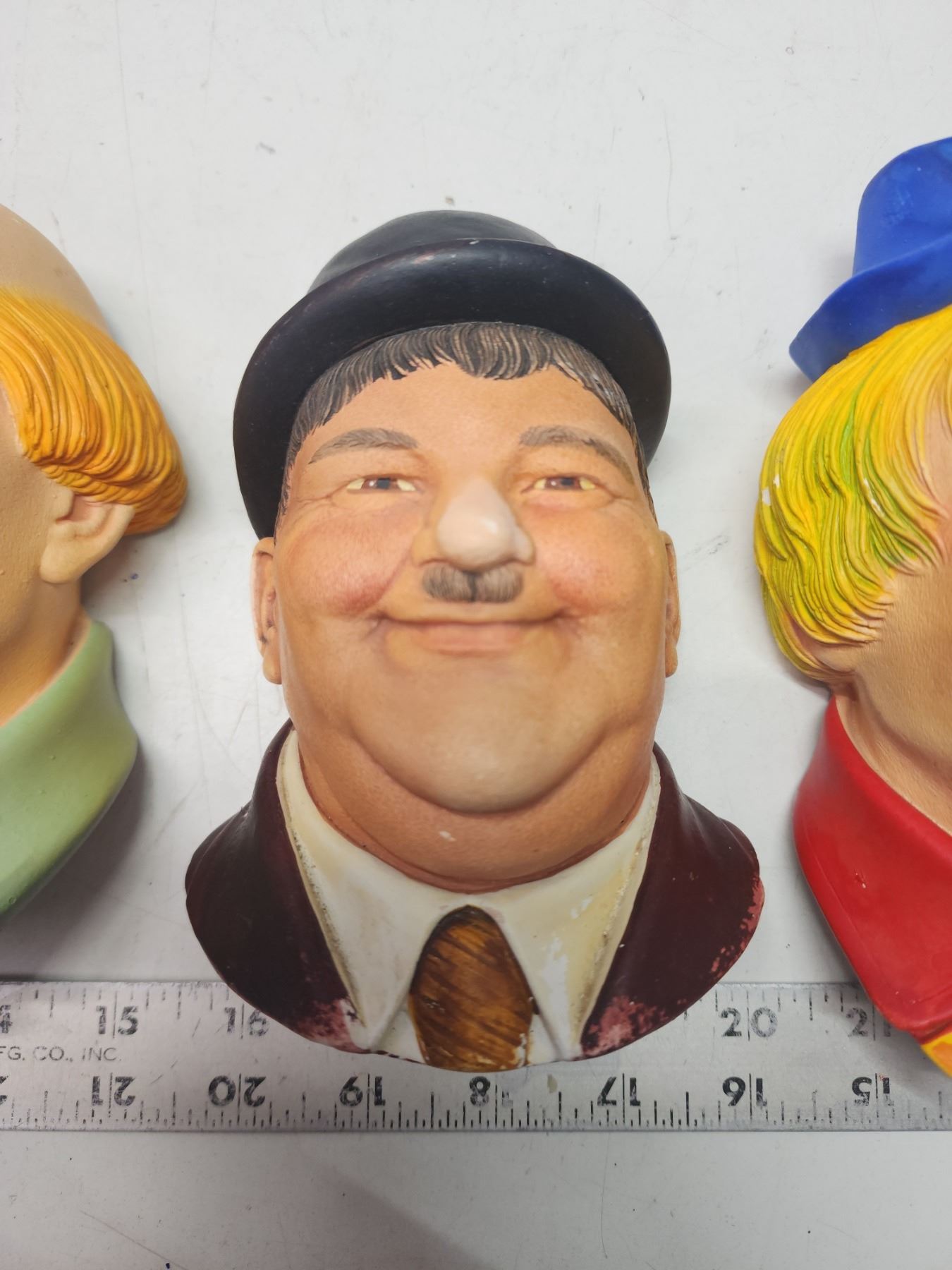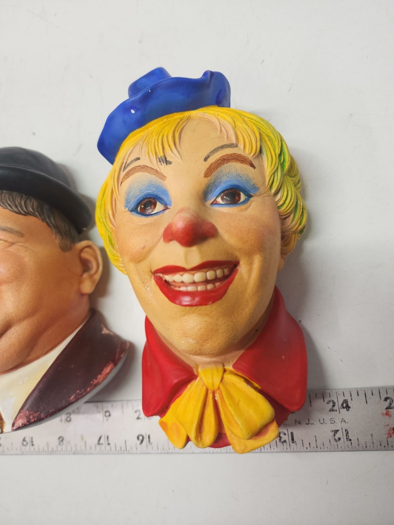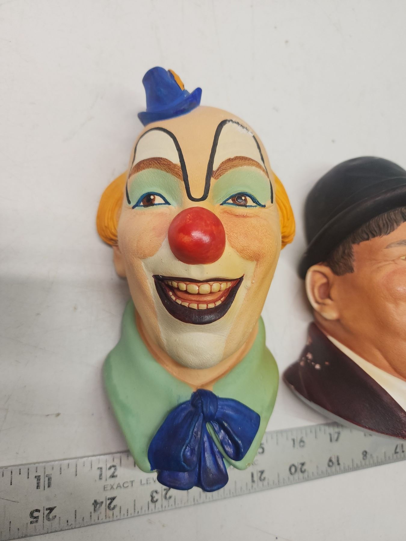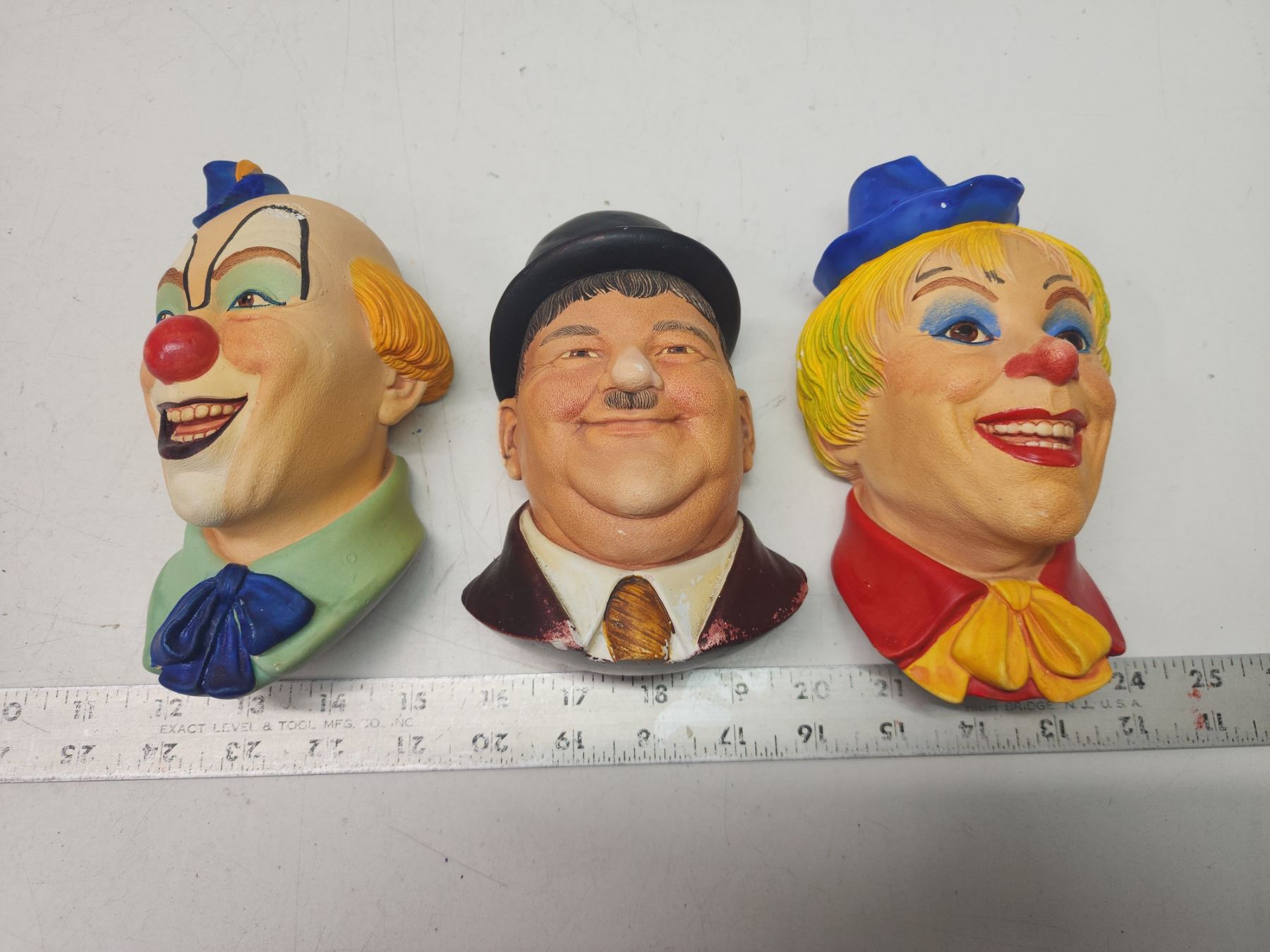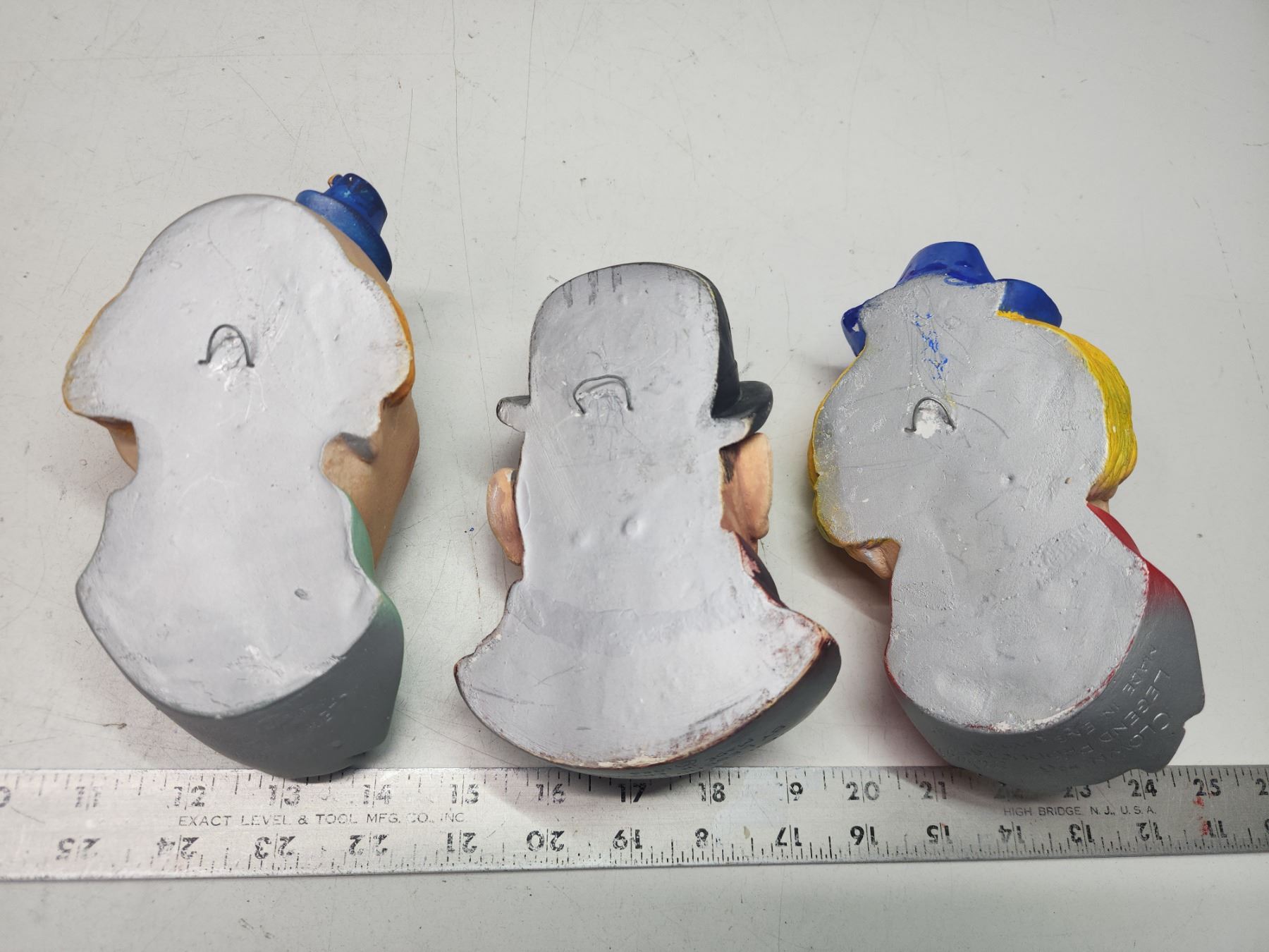 3 Decorative figure heads - 2 clowns and gentleman - Legend products, J. Wright