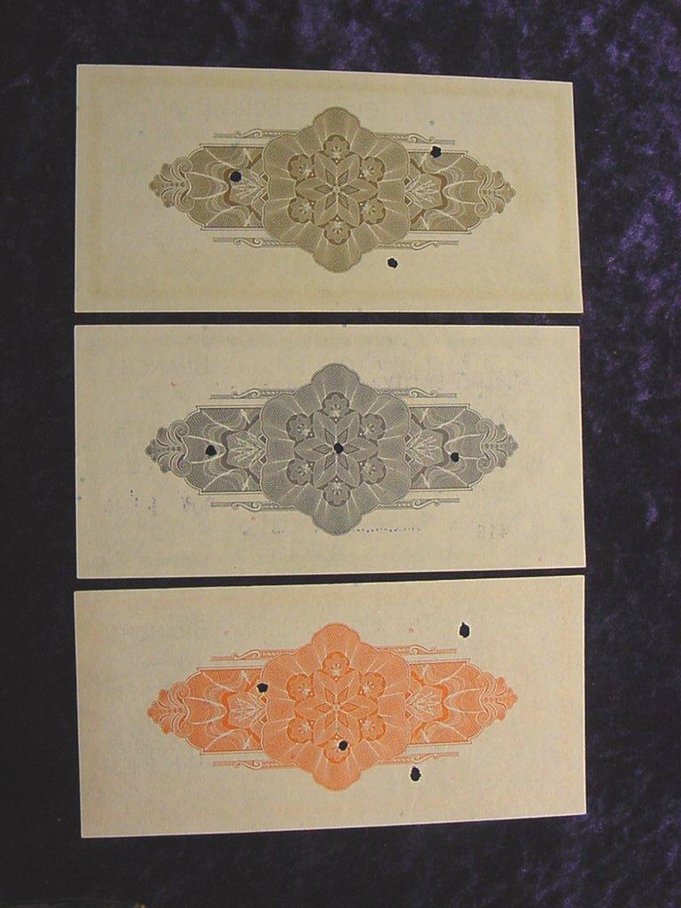 (3) Depression Script, $1., $5. & $ 10. May 1934, Long Branch, NJ. Canciled 1935 Holed Punched. EF.