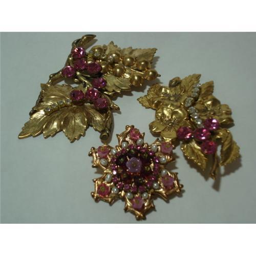 <tr><td>Title:3 Designer Pink Hat Ladies Brooches</td></tr>
