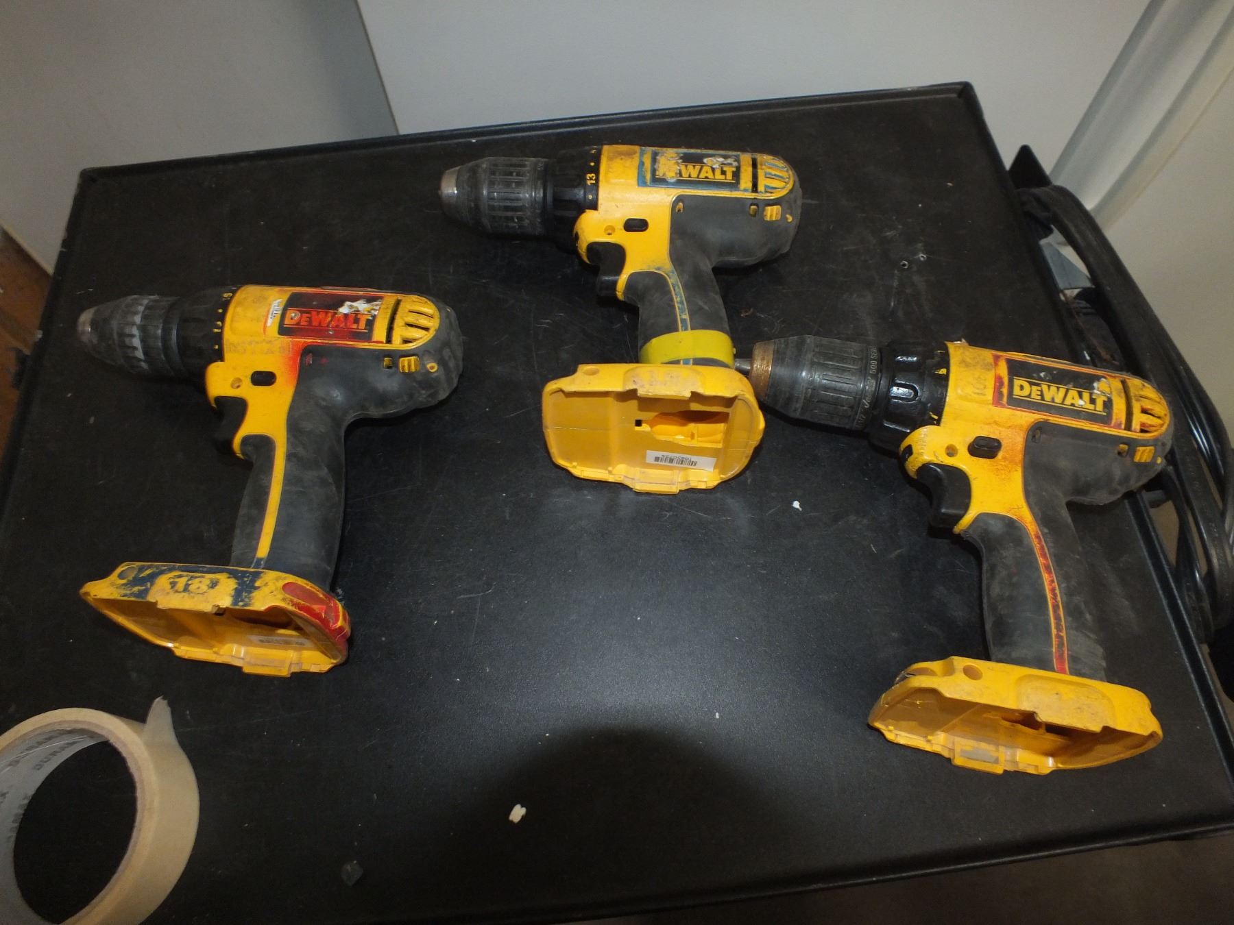 3 Dewalt Drills, condition unknown untested, no batteries or chargers...used
