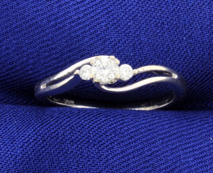 1/5 Carat Total Weight with 3 brilliant cut diamonds SI2 clarity and H-I color. Size 7. 2.1g