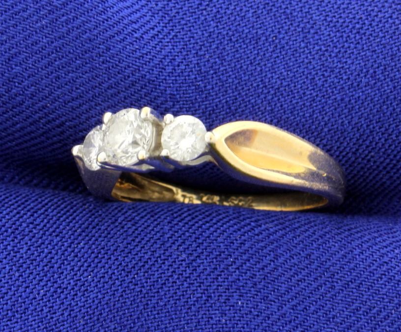 The 3 brilliant cut diamonds weigh .78 carats total weight (as stamped inside ring!). Clarity I1-I2 and H-I-J color. Size 7.5 3.3g