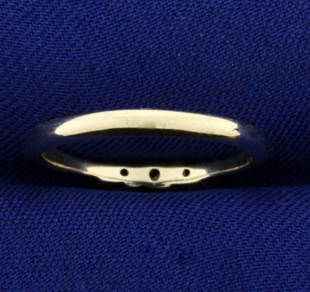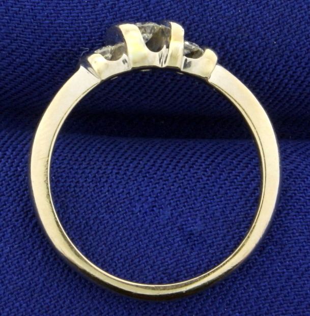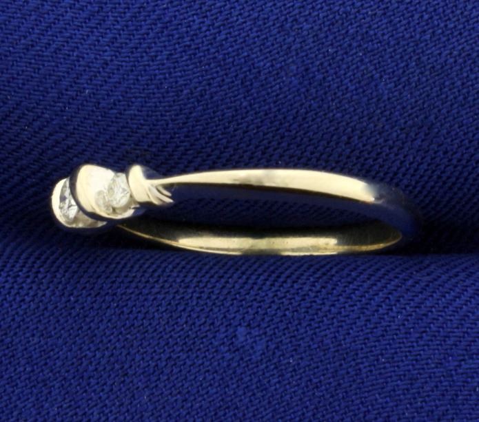 In 14K White Gold. Contains three high quality diamonds - a center .07ct and two .035ct, VS clarity/H color. Size 7. 2.6g