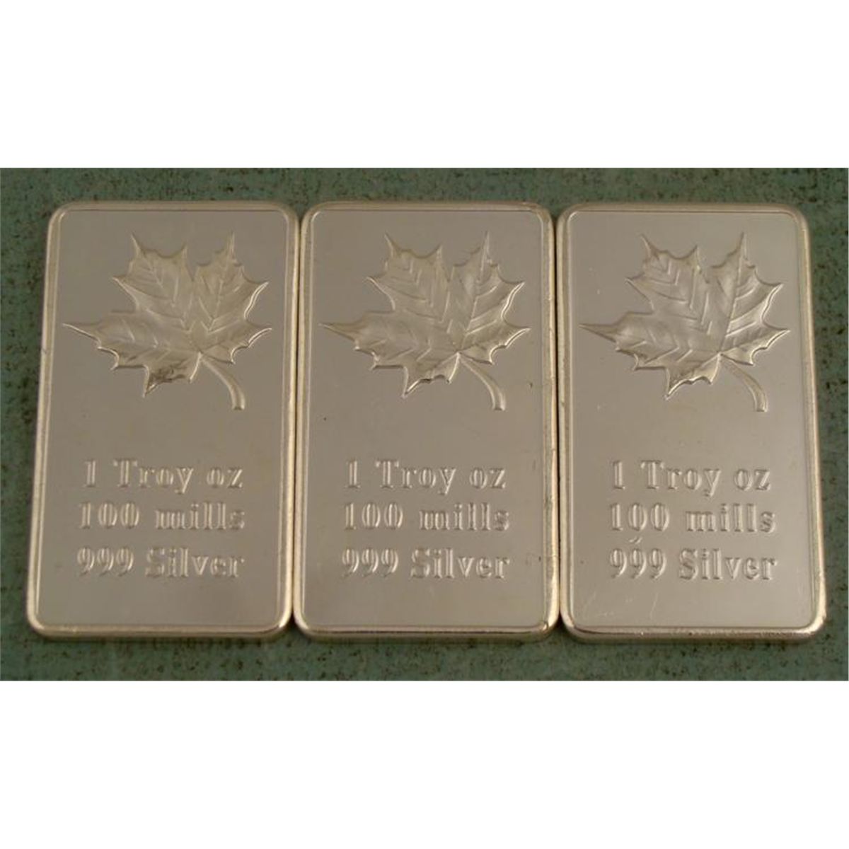3 Different Colored Canadian 1 Troy Oz 999 Silver BarsColors: Red, Silver, and Black