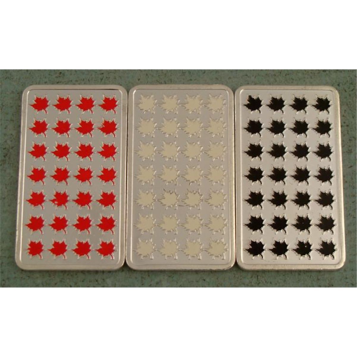 3 Different Colored Canadian 999 100 Mills Silver BarsColors: Red, Silver, and Black
