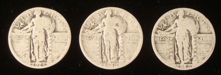 3 Diff Date Standing Liberty Quarters 1925, 1926-P & D