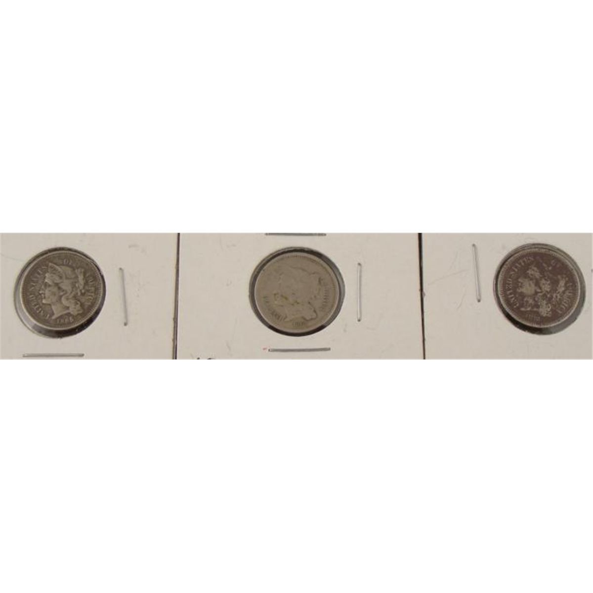 3 Different Date US 3 Cent Nickel Coins * Dates: 1865, 1867, 1878