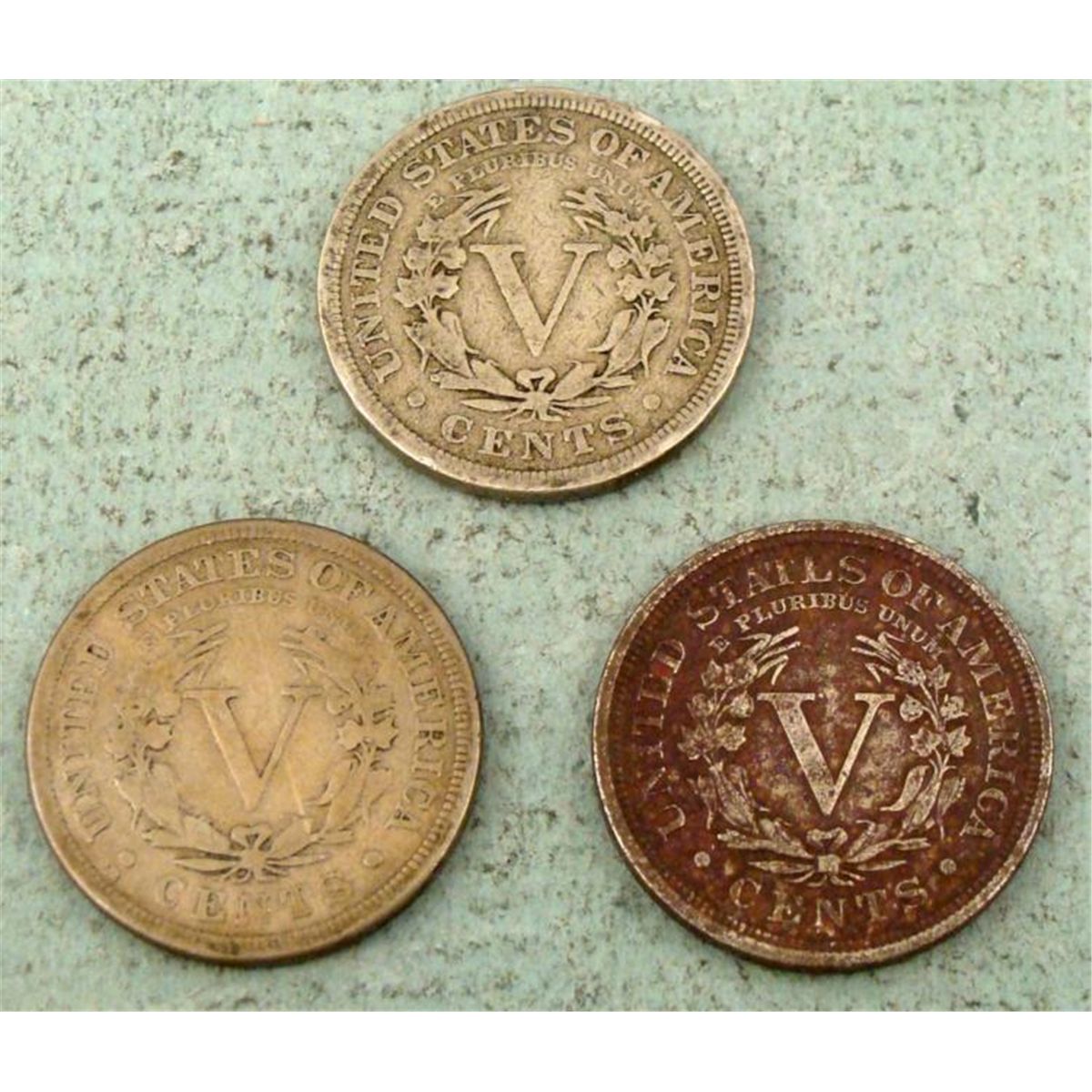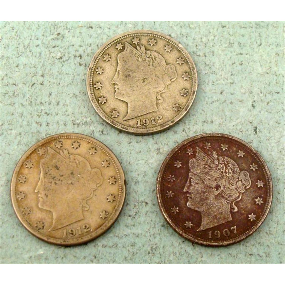 3 Different Date V Nickels * Condition: Nice Coins Dates: 1907, 1912, 1912-D