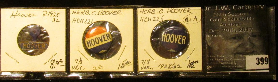 (3) Different Hoover Political Pin-back or Pocket tabs. 'Doc' valued this group at $39.00.
