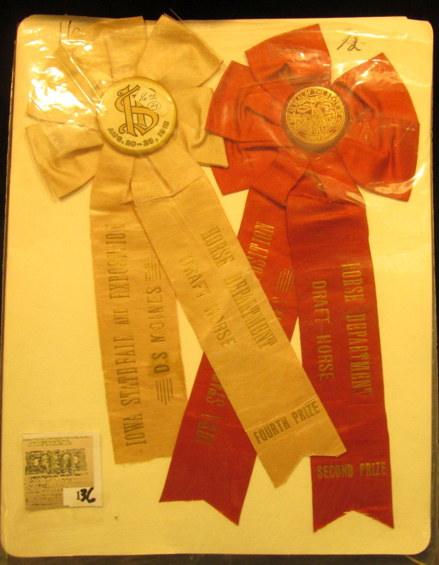 (3) Different early 1900 "Iowa State Fair" Equestrian related Award Ribbons.