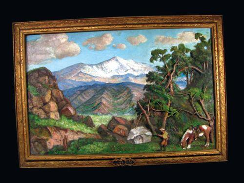 Three Dimensional Rendering of Pikes Peak by W.E. Shepard. Plaster painting in original frame. Very good condition. 38 1/2 X 27 inches.