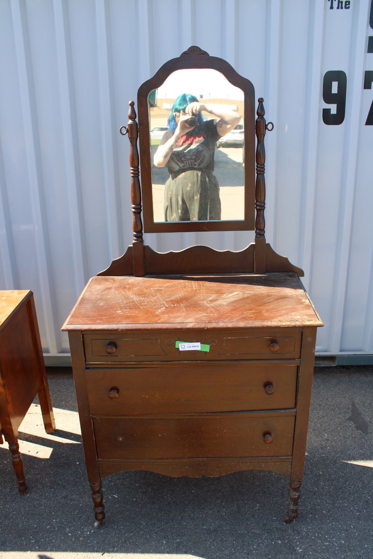 *3 Door Dresser with Mirror on Wheels - 32" x 17" x 34"