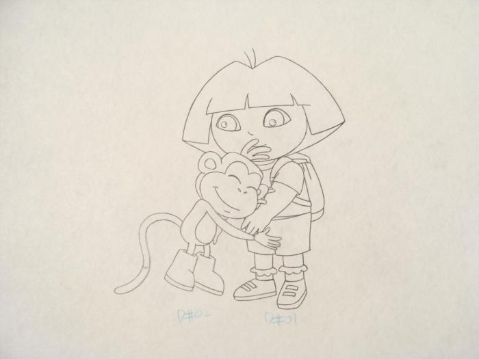 These show Dora and Boots having fun together.Medium: Black pencil on white paper, with animator notations in black and non photo blue pencil; the bottom of each sheet has peg holesSize: 10 1/2 x 12 1/2 inchesCertificate of Authenticity includedCondition: Excellent Dora and Boots are the best of friends, and these nice original drawings show their true friendship.