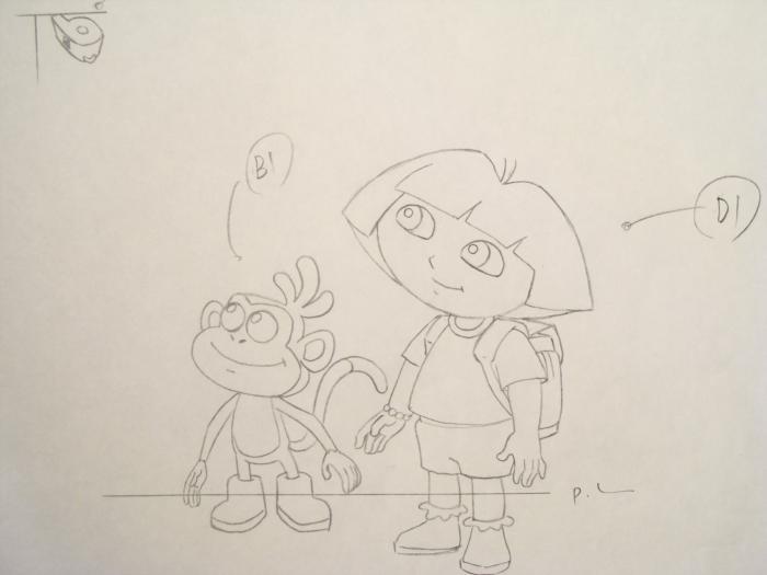 These three original drawings were used in the production of the animated series Dora the Explorer. Each one is a unique image, from which an animation cel was inspired or created.