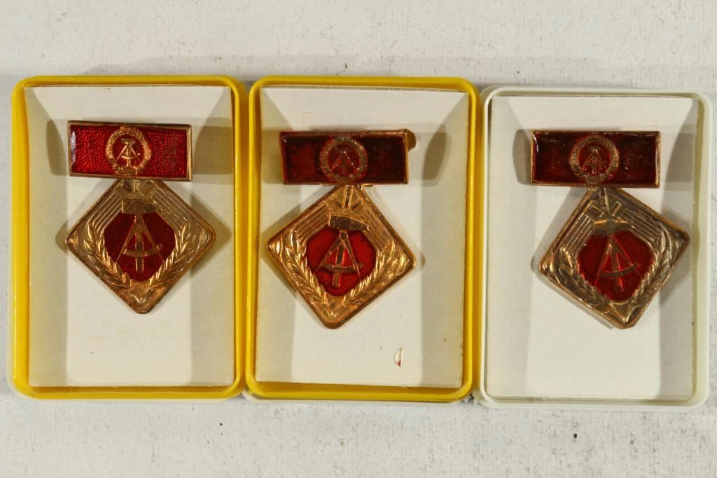 3 EAST GERMAN SOCIALIST MEDALS 2 WITH DAMAGE ETC..