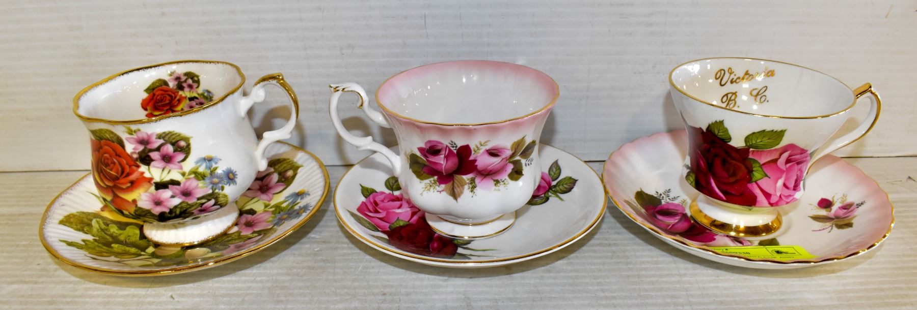 3 ENGLISH BONE CHINA CUP AND SAUCERS