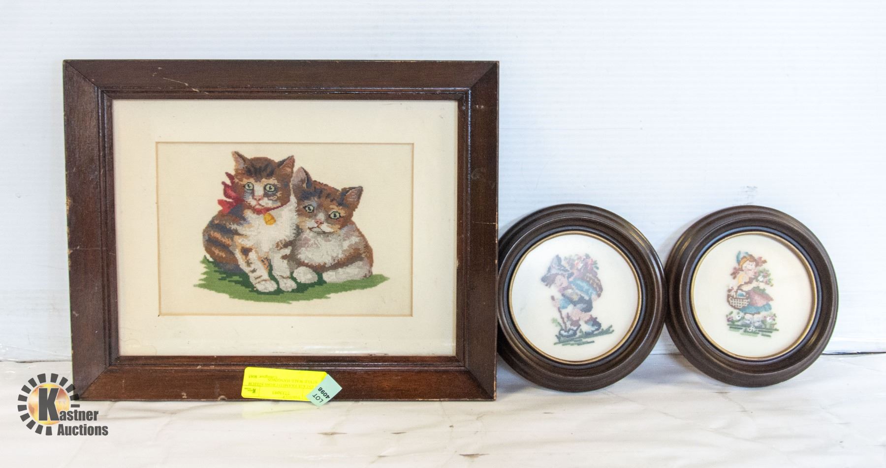 3 ESTATE FRAMED CROSS STITCH STYLE WALL HANGINGS
