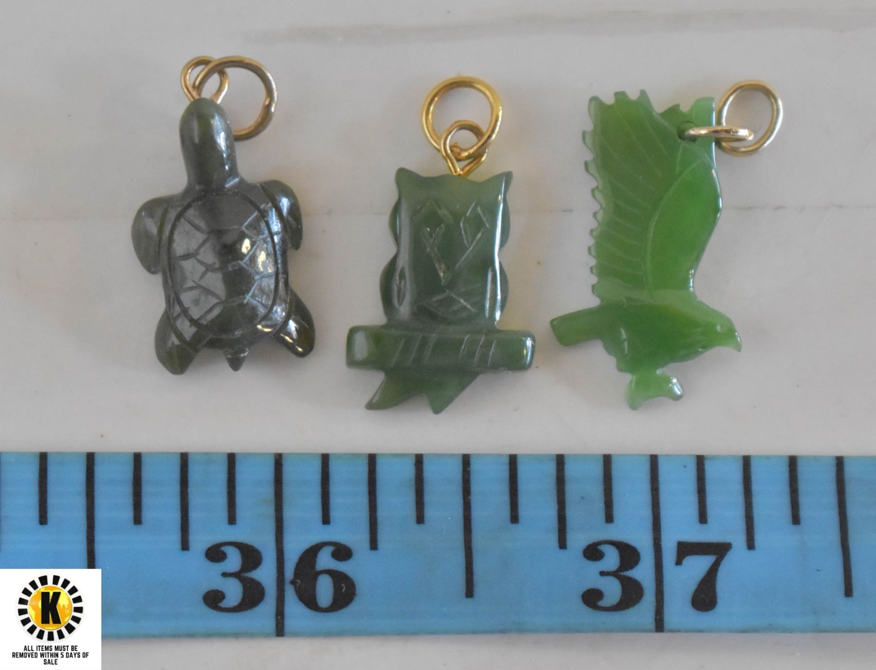 3 ESTATE JADE CHARMS EAGLE, OWL, TURTLE