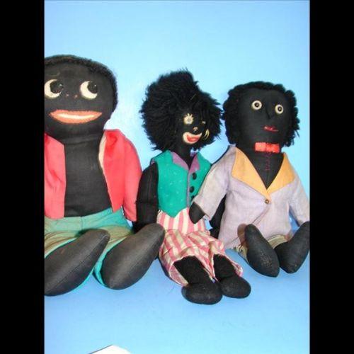 Group of Three early golliwogs 2 @18" and one 16". Wearing one with Red Jacket, one with Green Vest and one with Red bowtie. Good condition. Weight 1 1/2 lbs.