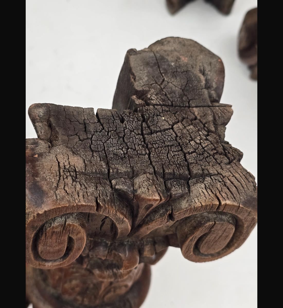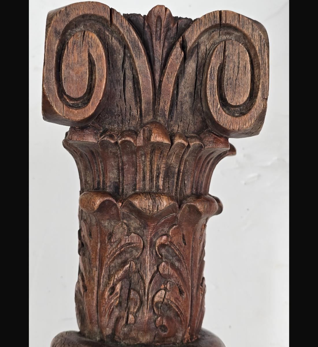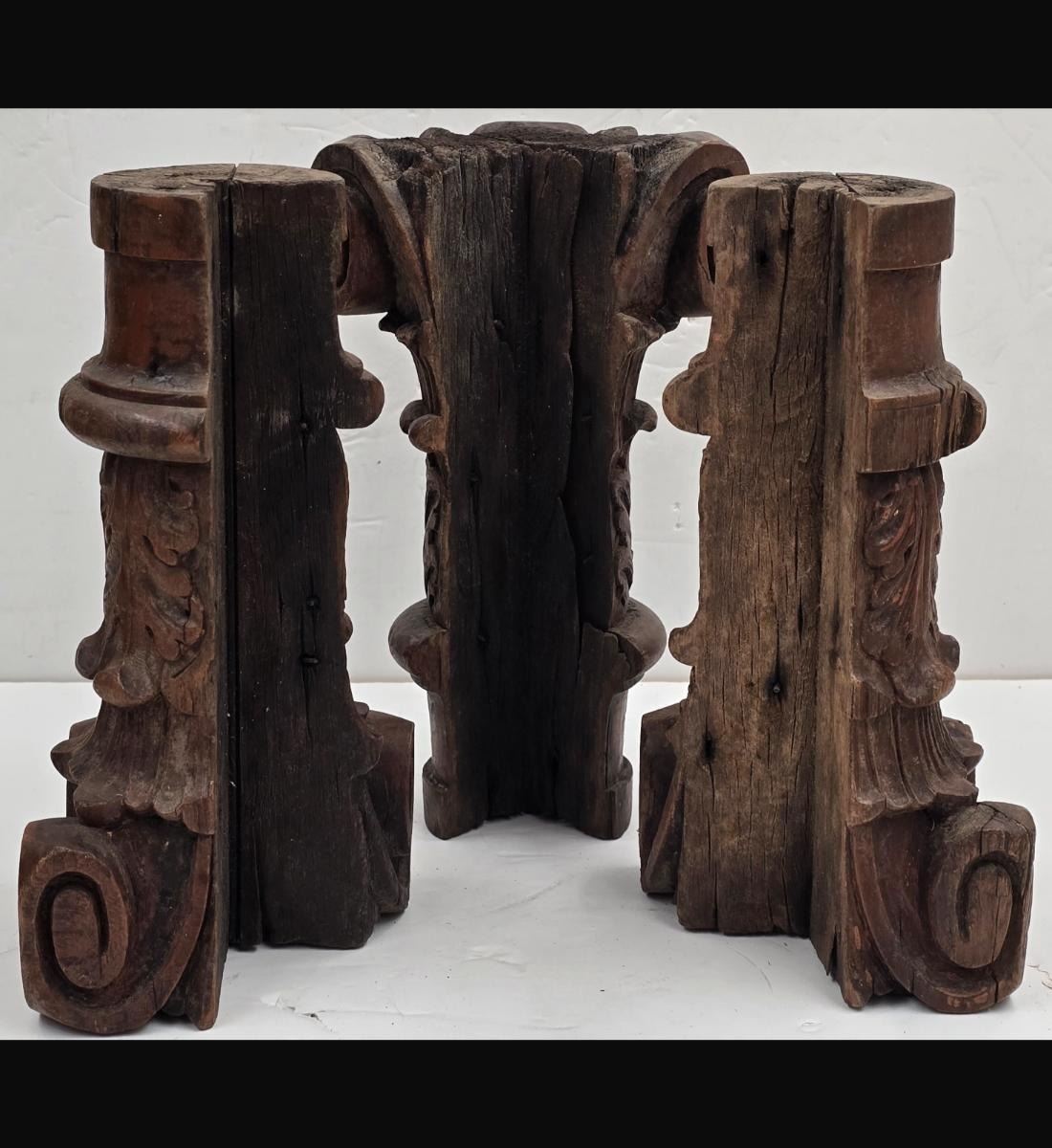 A Set 3 Early Hand Carved Wooden Architectural Column Pieces, Probably 18-19th Century French. Measure 9 3/4". Provenance: One Person Private Estate Central Florida.