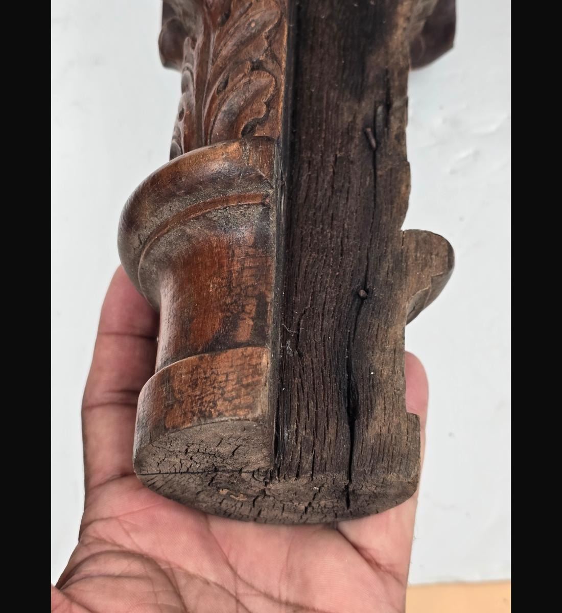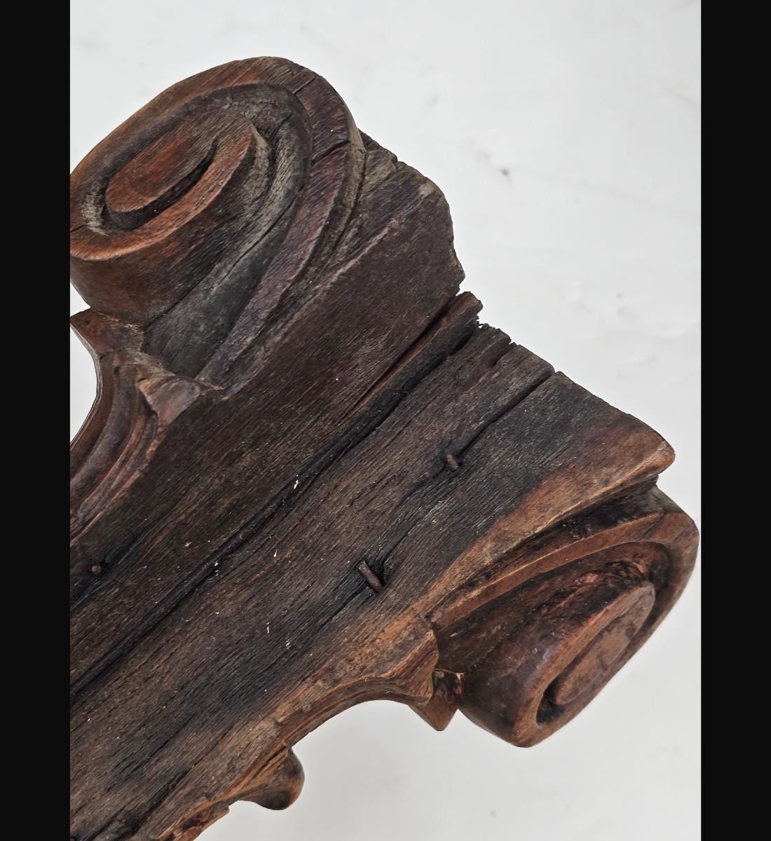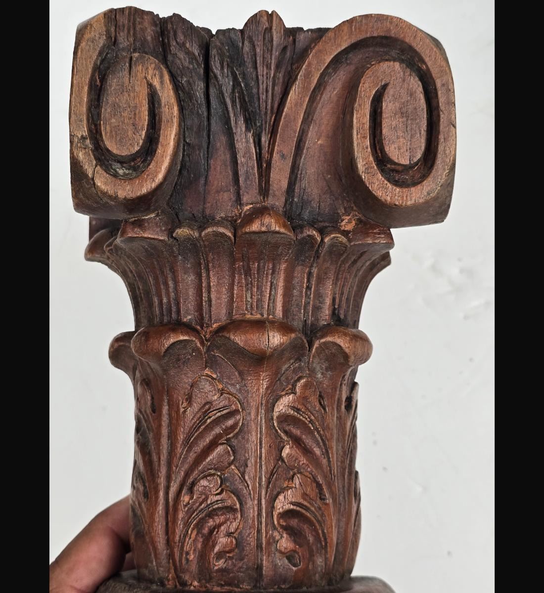 A Set 3 Early Hand Carved Wooden Architectural Column Pieces, Probably 18-19th Century French. Measure 9 3/4". Provenance: One Person Private Estate Central Florida.