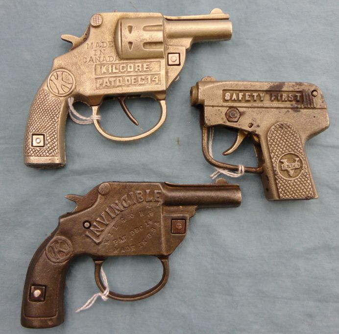 Kilcore Mfg. in Canada in very good overall condition. Invincible 50 Shot Circa 1930 good condition absent trigger. A rare Safety First by Victor circa 1920 in good condition.