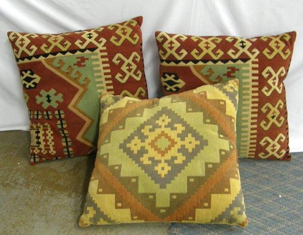 3 East Indian Design Fabric Pillows. Measure approx. 24'' x 24'' x 12''. Buyers Pay Actual Shipping and Handling Charges(see terms and conditions for more information).