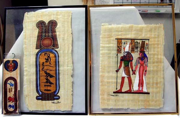 3 Egyptian Papyrus Artwork Items, largest measures 8'' x 10''