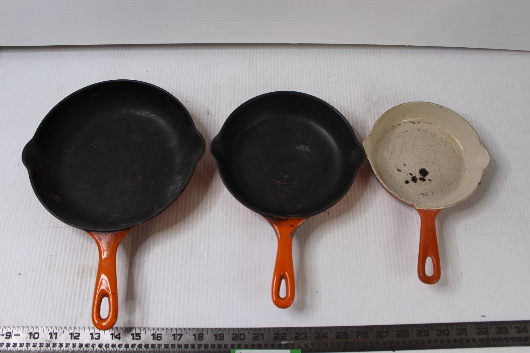 (3) Enamel Coated Cast Iron Frying Pans
