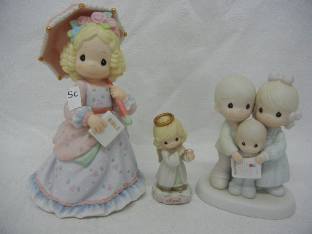 3 Enesco Precious Moments Figurines: Victorious in Jesus, God Bless the Day We Found You, and April