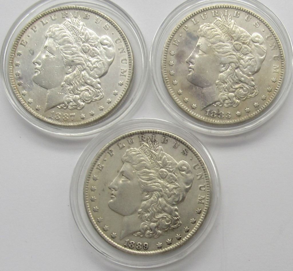 3-F/XF MORGAN DOLLARS, 1883, 1887,