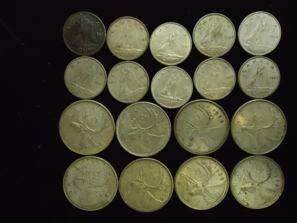 $3 FACE VALUE OF 1968 CANADIAN SILVER COINAGE