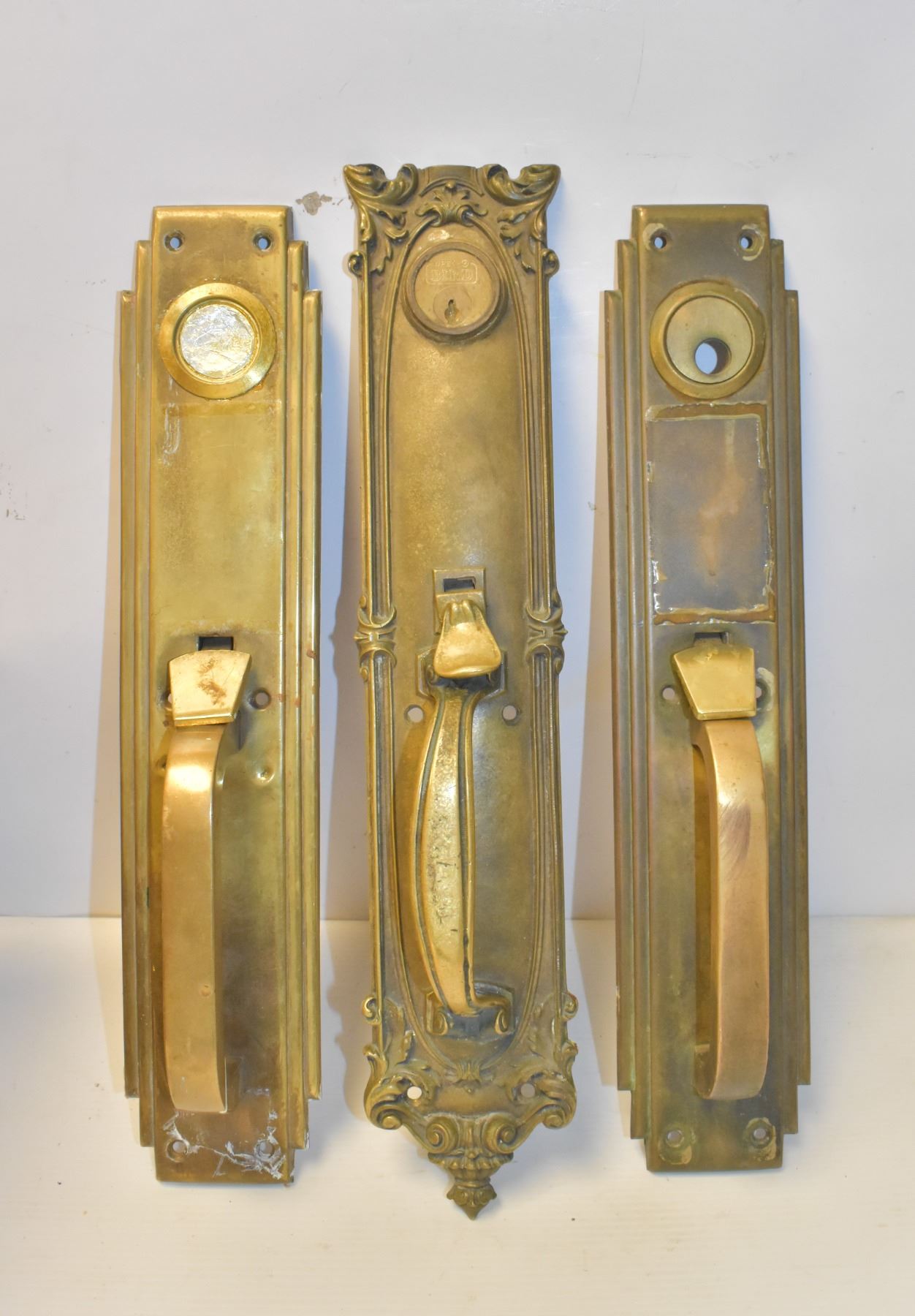 3 FANCY ANTIQUE BRASS DOOR HANDLES