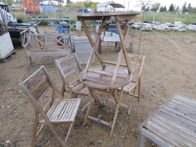 3 FOLDING CHAIRS, 2 FOLDING TABLES, WOODEN