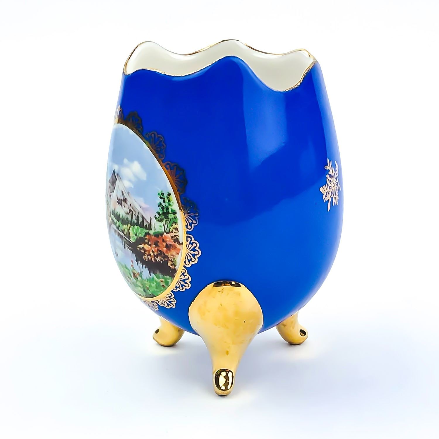 3 FOOTED PORCELAIN EGG VASE - MT RUNDLE BANFF, AB