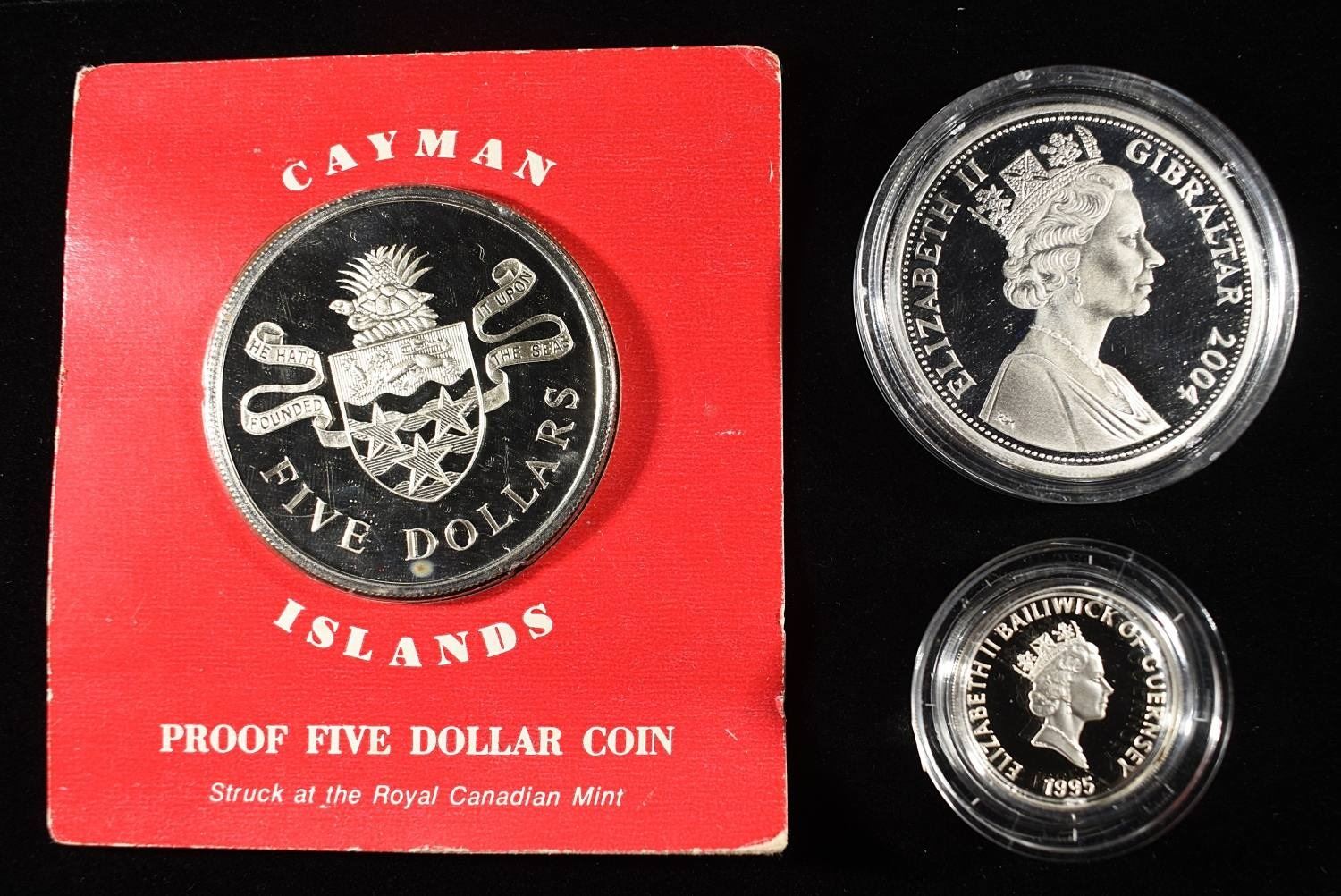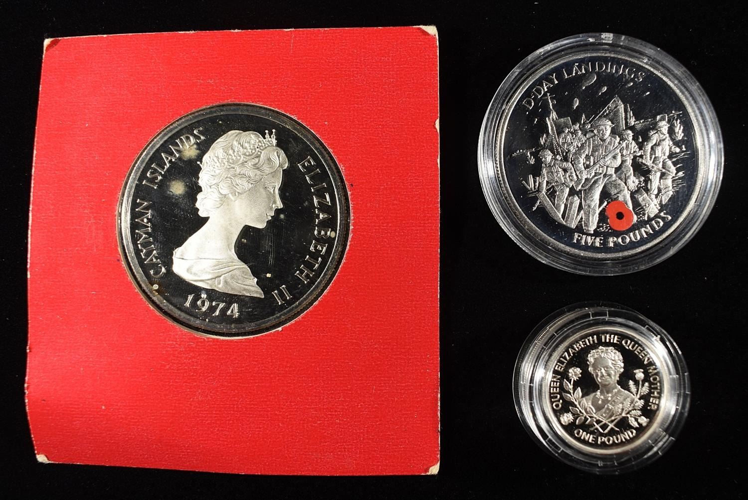 1974 $5 CAYMAN ISLANDS, 1995 1 POUND BALLIWICK OF GUERNSEY, 2004 5 POUNDS D-DAY LANDING ELIZABETH II ESTIMATE $90 - $110.