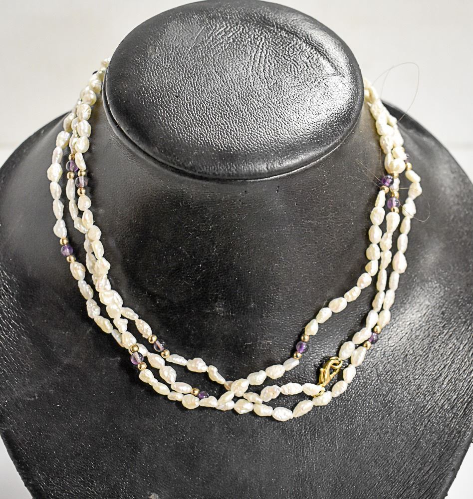3 FRESHWATER PEARL AND AMETHYST CHOKERS