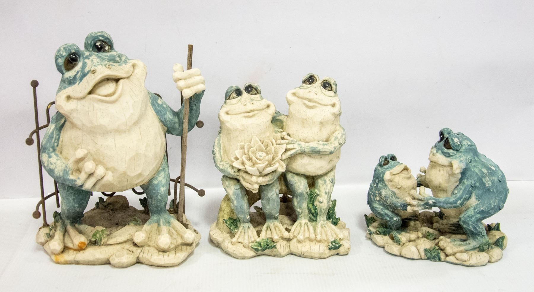 3 FROG GARDEN STATUES